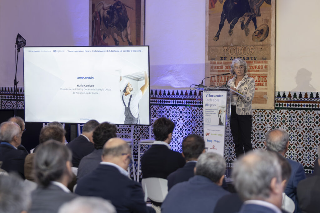Tras la apertura de puertas y el café de bienvenida, el acto fue inaugurado oficialmente por Juan Miguel Ramírez, vocal de Relaciones Institucionales de ADIPAEX, y Nuria Canivell, Decana del Colegio Oficial de Arquitectos de Sevilla y presidenta de FIDAS. La jornada estuvo moderada por César Ramírez, arquitecto y asesor técnico de FIDAS, quien condujo las diferentes intervenciones.