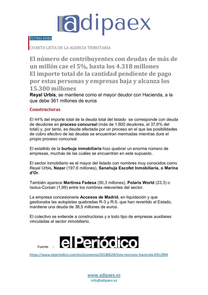 CUARTA LISTA DE LA AGENCIA TRIBUTARIA